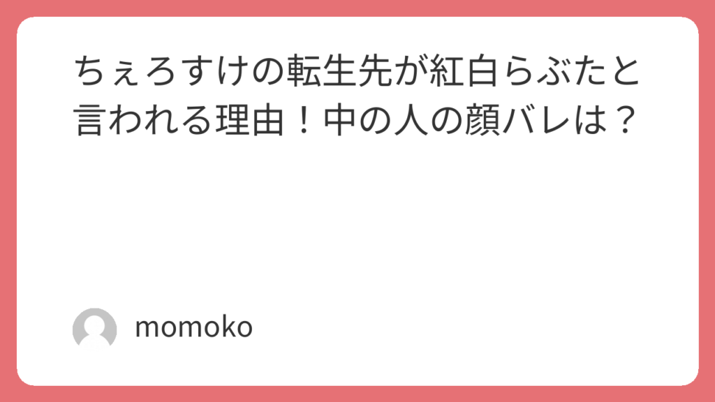では、「ちぇろすけ」さんの転生先はどこなのか、紅白らぶたと言われる理由などさっそくみていきましょう。