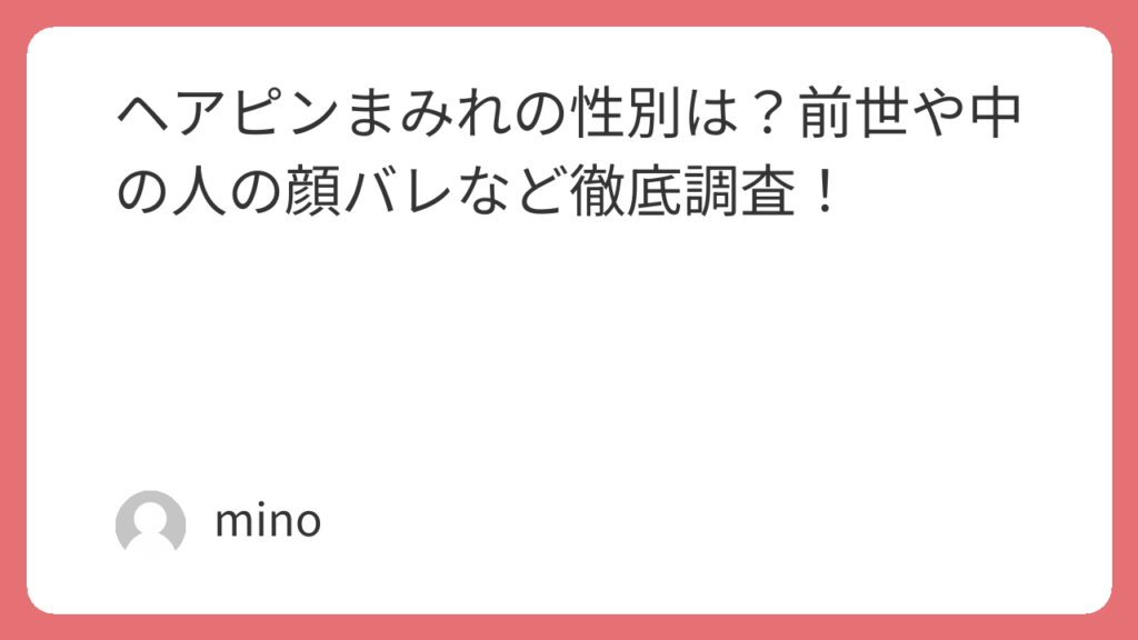 それでは、ヘアピンまみれさんの中の人の性別前世顔バレなど気になる情報について早速見ていきましょう。