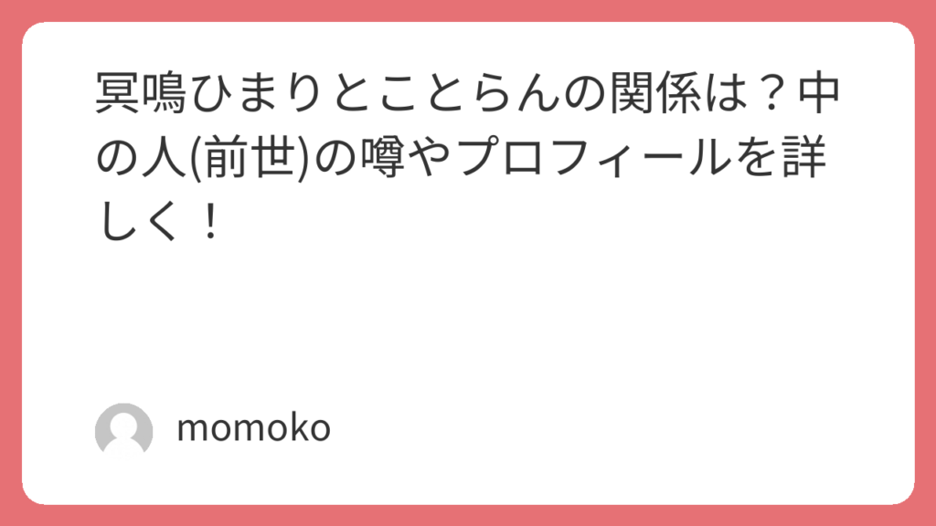 きっかけは声や話し方、配信スタイルなどの共通点。 さらに、ことらんさんが配信で使っていたフレーズや口癖が、冥鳴ひまりさんにもそのまま登場したことから、 ファンの間で「同一人物説」が急速に広まりました 。