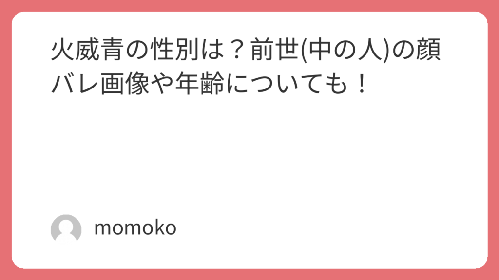 火威青さんの、性別や前世(中の人)や顔バレ、年齢についてお届けしました!