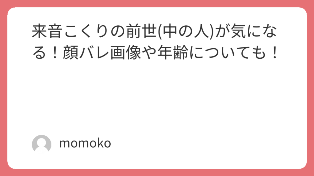 Vtuber来音こくりさんの前世、中の人や前世、顔バレ画像など気になるプロフィール情報についてお届けします。