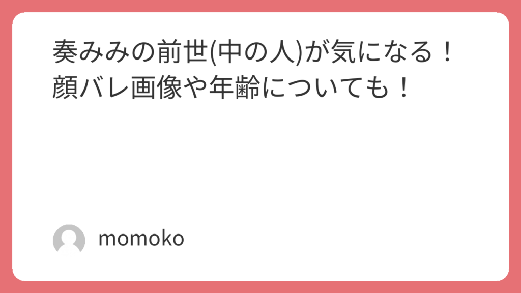 そんな奏みみさんの素顔や年齢、中の人からプロフィールまで、迫っていきましょう!