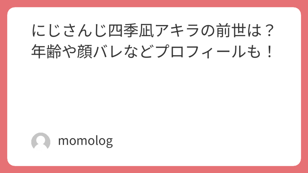 この記事では、四季凪アキラの前世(中の人)、年齢や顔バレなどのプロフィールについて詳しく紹介します。