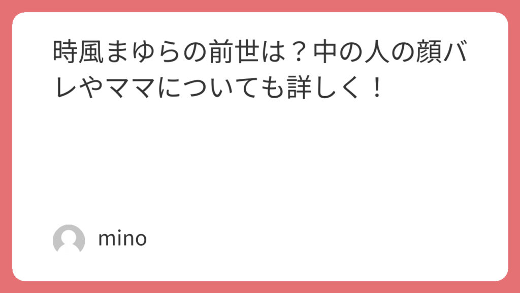 それでは、時風まゆらさんの前世、中の人の顔バレ、ママなどについて早速見ていきましょう。