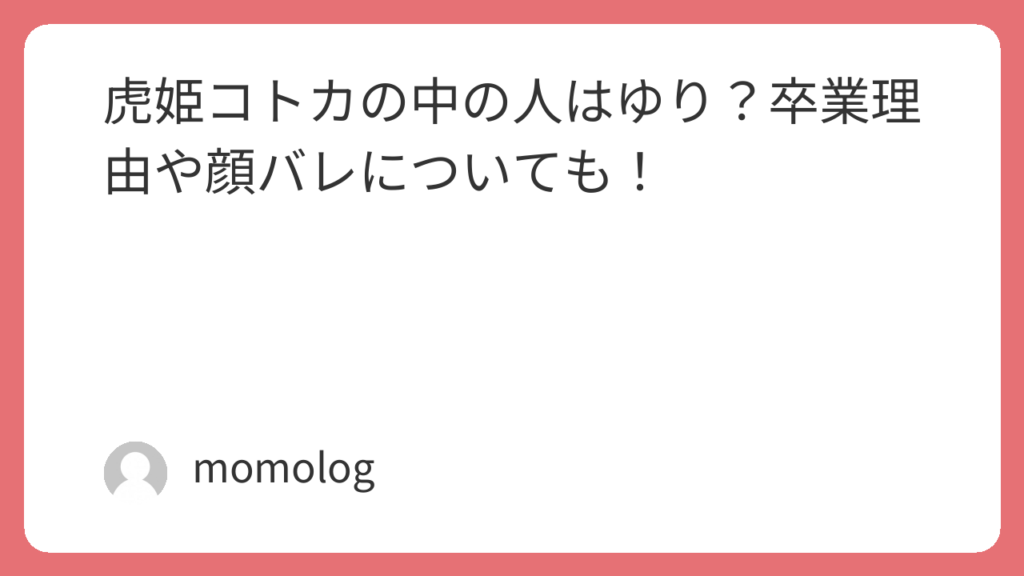 この記事では、虎姫コトカさんの中の人、卒業理由や顔バレなどのプロフィールについて詳しく紹介します。